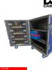 The case exterior is built from ½” plywood laminated with red ABS plastic. The hardware set includes 8 deep recessed handles and 4 recessed vent dishes. The case rides on 7 – 8” field casters with the front 3 locking.