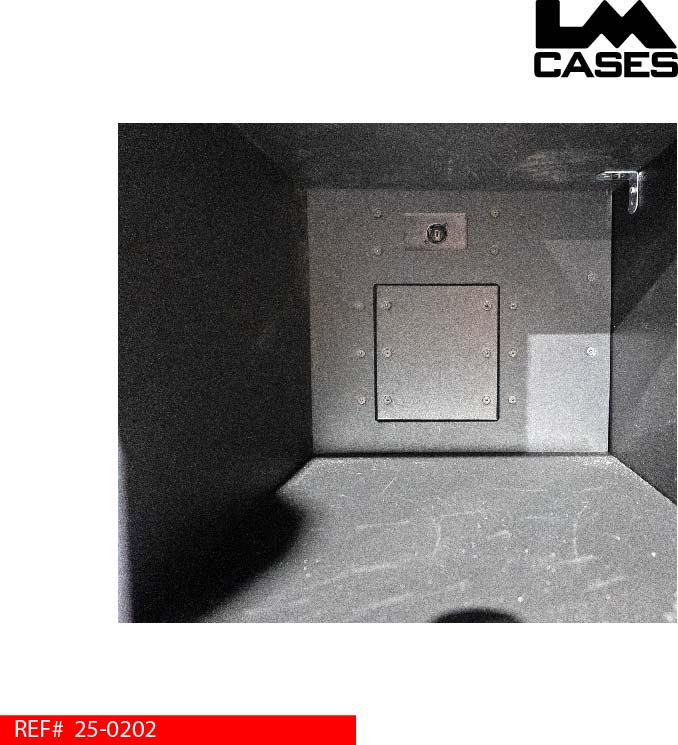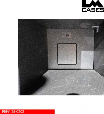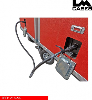 Each helmet is held in an individual compartment built from ½” black marine grade plastic. The compartments feature a USB C charge port. The port can deliver 6 amps of charge and 30 watts of power. A smart chip provides variable amounts of power depending on the device’s requirement. All electronic items are accessible via an individual access panel in each compartment in the unlikely need for troubleshooting. Power is brought into the system via a 30ft retractable cable reel. Each side of the case is linked together via a LM Tour Systems True1 – True1 power cable.