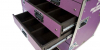 The exterior of the case is built out of 3/8" plywood laminated with purple ABS plastic. The exterior also feature 8" field casters as well as a custom silkscreen of the school's logo.