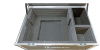 This custom case is designed hold a Panasonic RZ970 projector with a separate lens compartment. The projector is held in a custom CNC cut, PE foam insert. A 14” x 14” x 1.75” accessory compartment is located under the projector for small parts and cables. A separate lens compartment with dimensions of 7” x 7” x 7.75” is also provided for storage. An additional carpet lined accessory compartment is provided for larger items.