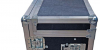 This compact flypack is designed for the Roland V-160 HD Switcher. The switcher is mounted via its rack ears to 5U of angled rack rail. The rack rail is mounted on rubber isolation mounts to provide shock protection during transport. A ½” black, marine grade plastic hinged decorative cover is mounted behind the switcher to hide cables. 2 small cable hatches are provided to handle cables coming into and out of the case. The case lid features pre-drilled holes in the 100mm VESA configuration for a user mounted monitor.