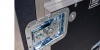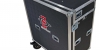 The case exterior is built 3/8” plywood laminated with black ABS plastic. The trunk features 3 prints of the 2 color San Diego State Equipment logo. The trunk exterior has 2 UHMW runners on the back of the case allowing the case to ride on its back if needed in a bus bay. Case hardware includes 2 pad locking latches, 8 deep recessed and 8” field casters.