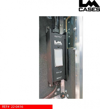 The case lid features Furman Pluglock which features 5 spaced AC outlets and locking brackets that prevent plugs from vibrating out. 2 LM Tour Systems DSK-SM boxes are mounted in the lid to provide 4 USB A charge ports in addition to a switch for the LED wash light. Power is routed to a fully enclosed inlet box. A LM Tour Systems 25ft 12awg HD power cable is provided for input power.